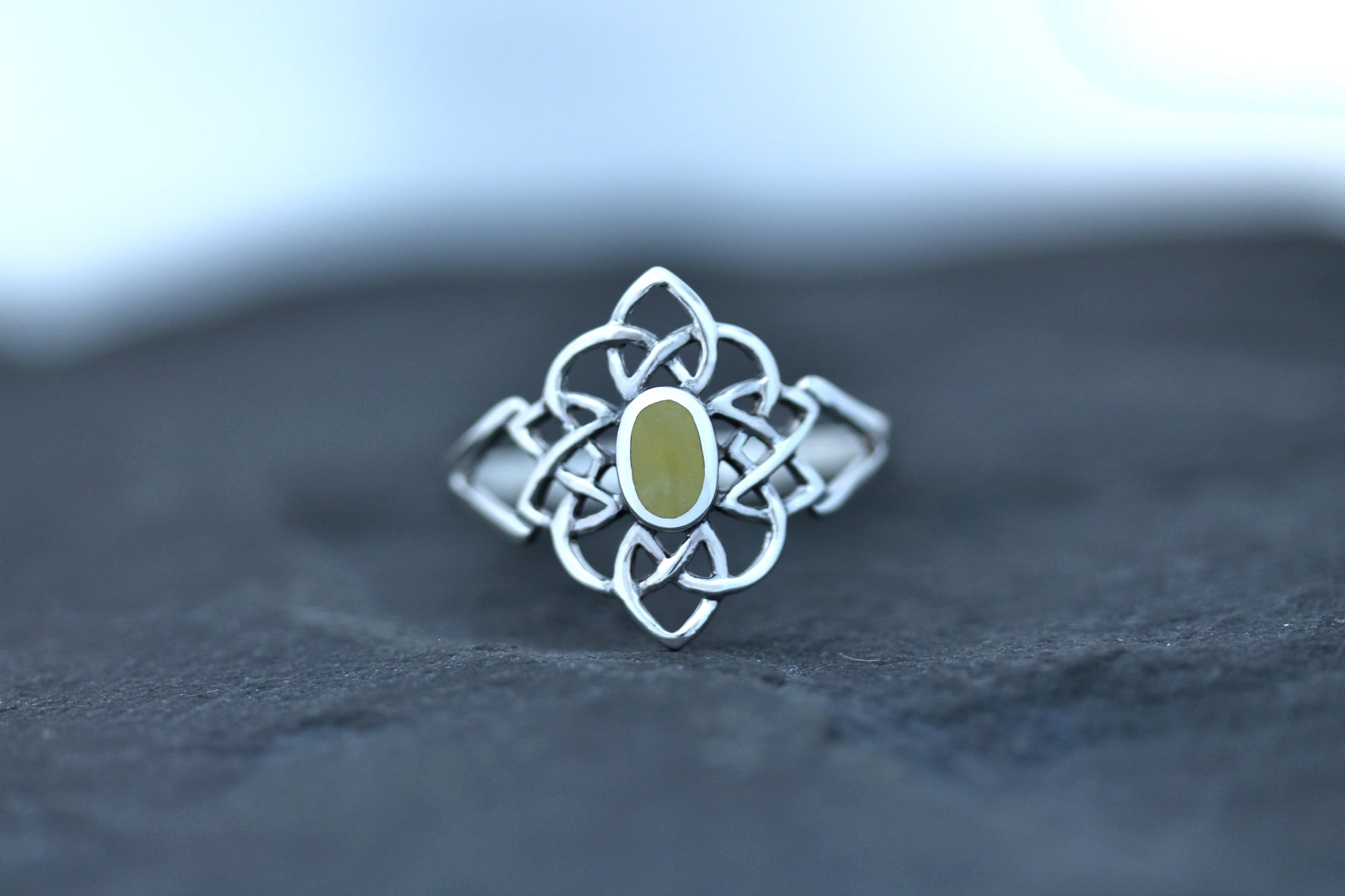 Celtic Knot Ring with Scottish Marble set in hallmarked 925 Sterling Silver.