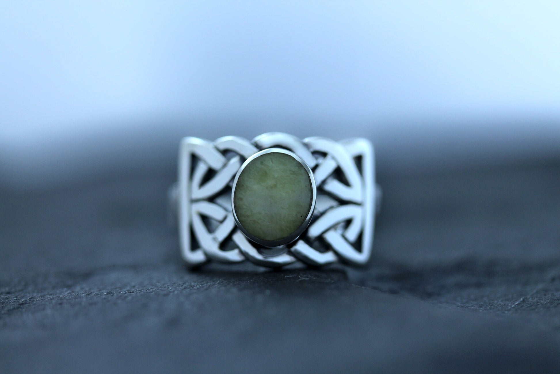 Celtic Knot Ring with oval Scottish Marble set in hallmarked 925 Sterling Silver.