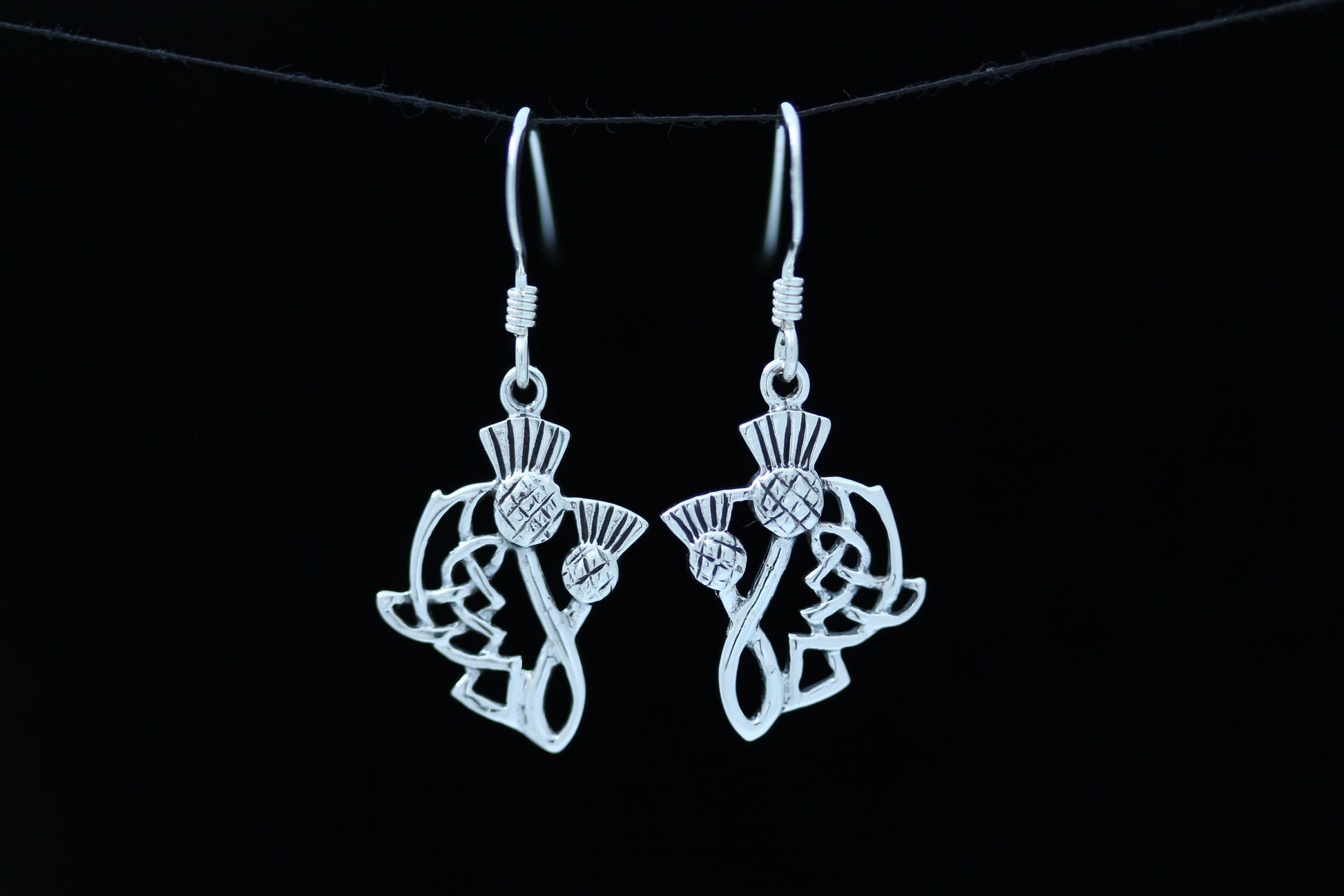 Scottish Thistle Earrings - Twin Buds with Celtic Knot Leaves