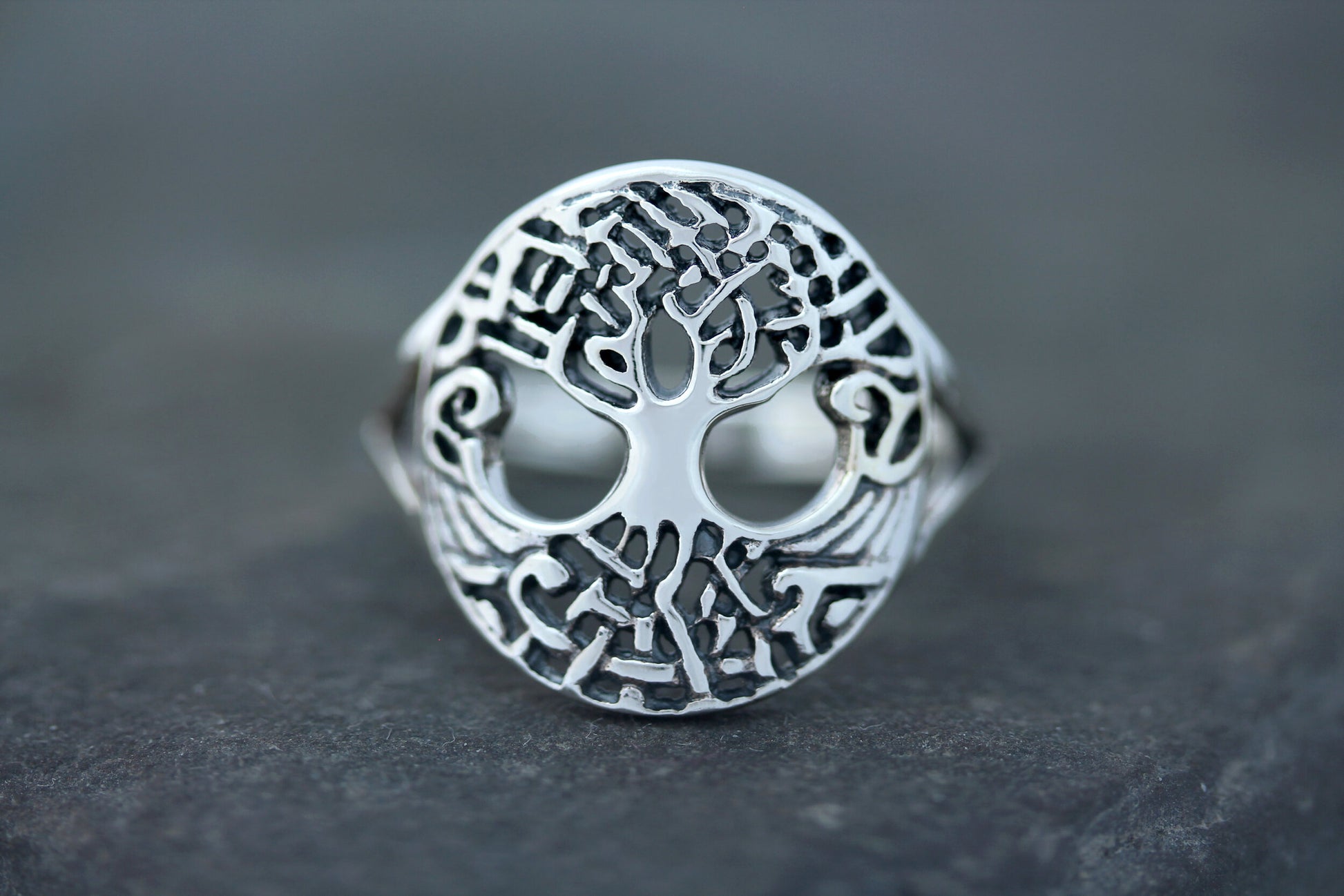 Tree of life ring in hallmarked 925 Sterling Silver.